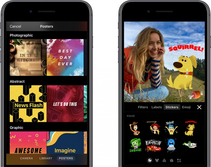 當(dāng)然,如果用戶想體驗(yàn)Clips 2.0豐富的自拍背景主題,就必須通過(guò)iPhone X的攝像頭才能實(shí)現(xiàn)。這讓用戶有了更多購(gòu)買iPhone X的購(gòu)買理由。Clips 2.0現(xiàn)在還提供一些動(dòng)態(tài)的貼紙功能,貼紙的形象有:達(dá)斯·維德(星球大戰(zhàn)前傳三部曲的男主角,正傳三部曲的重要反派角色)、盧克·天行者(絕地武士和原力使用者,義軍同盟成員)、萊婭公主、R2-D2機(jī)器人、C-3PO以及朱伊。蘋(píng)果此前曾與迪斯尼合作,將皮克斯動(dòng)畫(huà)工作室的一些角色引入Clips。