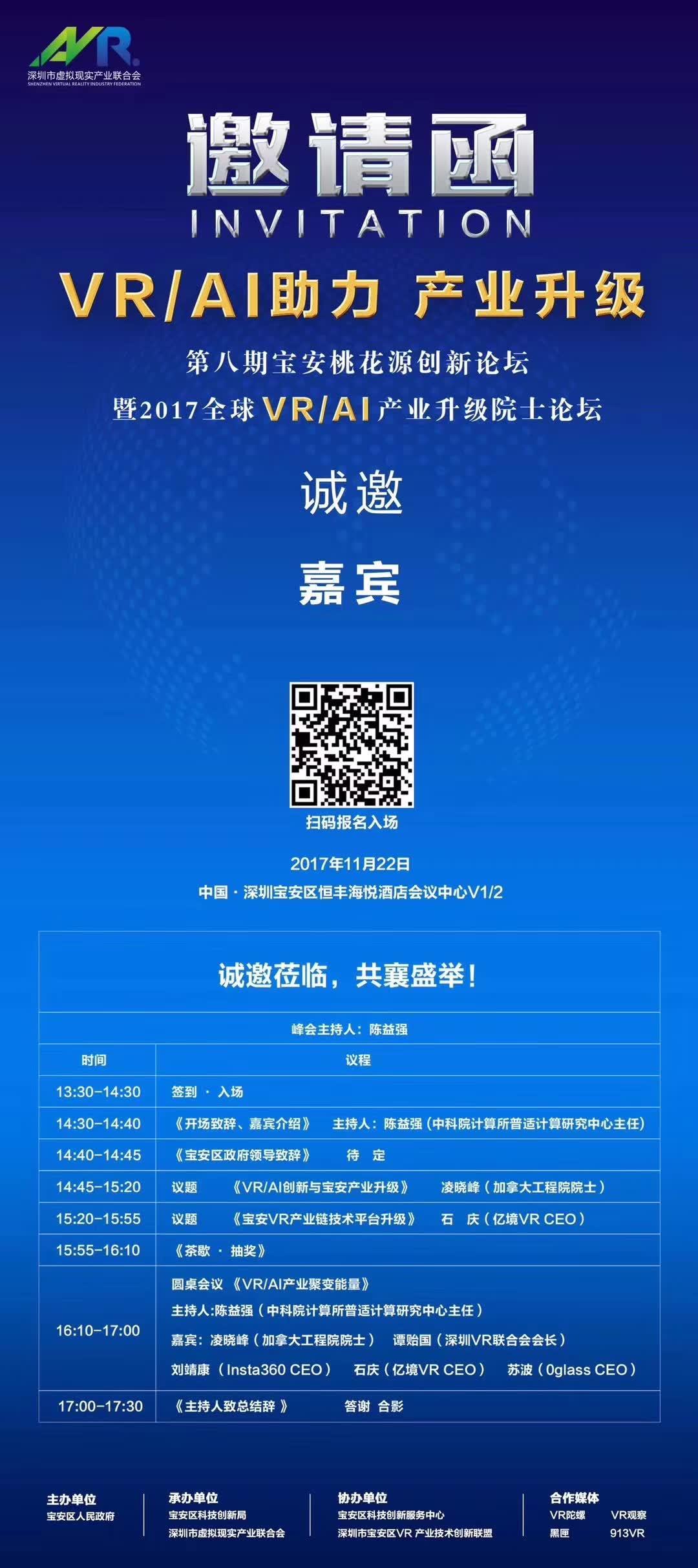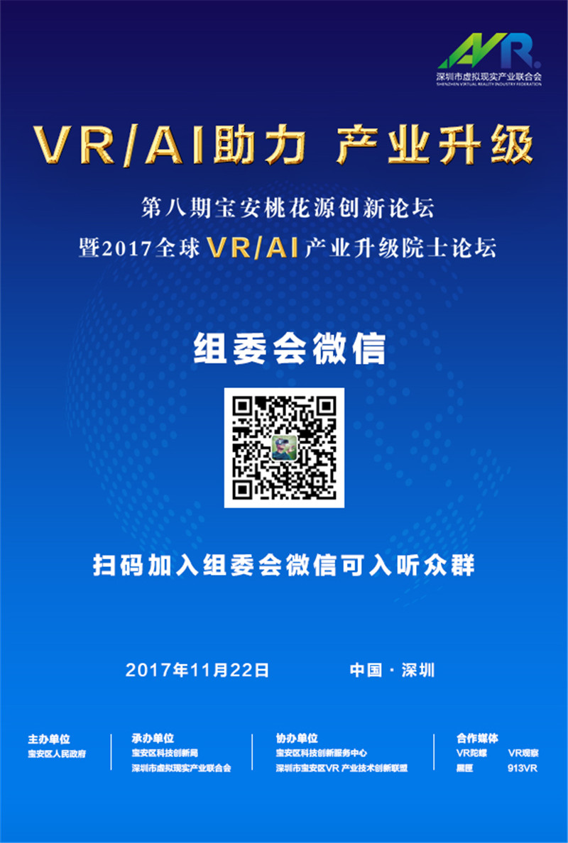 為推動(dòng)VR/AI產(chǎn)業(yè)發(fā)展,“2017全球VR/AI產(chǎn)業(yè)升級(jí)院士論壇”作為科技盛會(huì)高交會(huì)寶安分會(huì)場(chǎng)的亮點(diǎn)創(chuàng)新論壇之一,將于11月22日在深圳寶安恒豐海悅酒店隆重舉行。峰會(huì)將匯聚來自世界各地的知名企業(yè)高管和智慧精英,促進(jìn)寶安傳統(tǒng)產(chǎn)業(yè)轉(zhuǎn)型升級(jí),共同探討產(chǎn)業(yè)發(fā)展趨勢(shì)、最新技術(shù)方向以及政府政策對(duì)行業(yè)的影響等熱點(diǎn)問題,搭建學(xué)術(shù)與技術(shù)的交流平臺(tái)。將進(jìn)一步發(fā)揮寶安區(qū)VR/AI產(chǎn)業(yè)的集聚規(guī)模優(yōu)勢(shì),有益于VR/AI產(chǎn)業(yè)的集群化并形成蝴蝶效應(yīng),吸引更多更好的VR/AI企業(yè)和項(xiàng)目落戶寶安,打造寶安VR/AI產(chǎn)業(yè)城市名片。峰會(huì)獲”高交會(huì)”大力支持,并以“樹立中國(guó)VR/AI產(chǎn)業(yè)在全球的戰(zhàn)略核心地位”為核心,力促建立VR/AI行業(yè)的全球化標(biāo)準(zhǔn)、推動(dòng)VR/AI產(chǎn)業(yè)健康發(fā)展。
