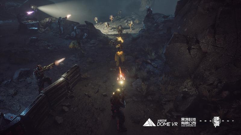 在之前的青島之行中我體驗了《Reboant》,因此在這里我想結合自己的試玩體驗以及我對姜鈞的采訪內容進行介紹。首先,這是一款科幻題材的VR FPS游戲,故事發(fā)生在一處外星戰(zhàn)場。在試玩過程中,《Reboant》帶給我一種類似于《光暈》和《戰(zhàn)爭機器》的大片既視感,這一點讓我非常震撼,沒想到國產游戲也能達到這種水平。姜鈞告訴我,《Reboant》從去年9月開始制作,他之前也制作過科幻題材的VR游戲,但由于當時受到一些限制,所以沒有辦法把自己的理念全部表達出來,這次正好有機會圓一個未了的心愿。“這部作品是我們結合之前積累的一些經(jīng)驗、同時又站在一個全新的角度上重新進行詮釋的產物。當時我們對于《Reboant》的世界觀構思了兩三個月的時間,其世界觀非常龐大,故事情節(jié)也很曲折。因為篇幅的限制,這部作品只呈現(xiàn)出整個世界觀的冰山一角,未來我們將通過更多的游戲、動畫、劇集等作品把整個故事全部展現(xiàn)出來。”