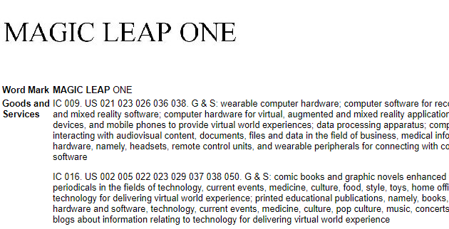 Magic Leap是一個秘密的增強(qiáng)現(xiàn)實(shí)初創(chuàng)公司,從最新的商標(biāo)申請來看其可能對第一個AR設(shè)備命名為“Magic Leap One”。