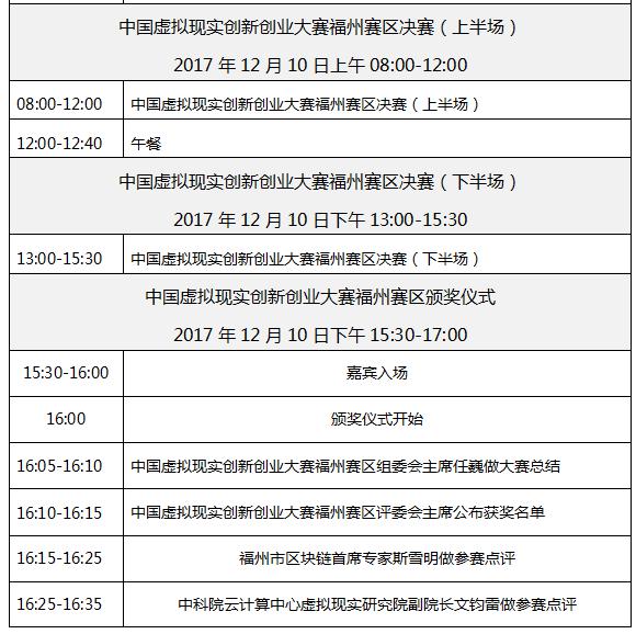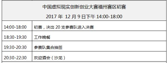 首屆中國虛擬現(xiàn)實(shí)創(chuàng)新創(chuàng)業(yè)大賽福州賽區(qū)賽程安排: