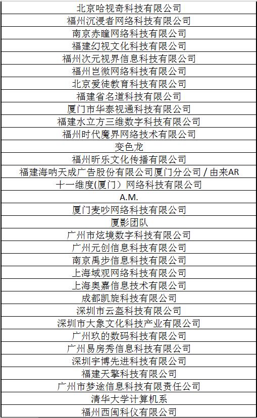 首屆中國虛擬現(xiàn)實(shí)創(chuàng)新創(chuàng)業(yè)大賽福州賽區(qū)入圍企業(yè)名單如下: