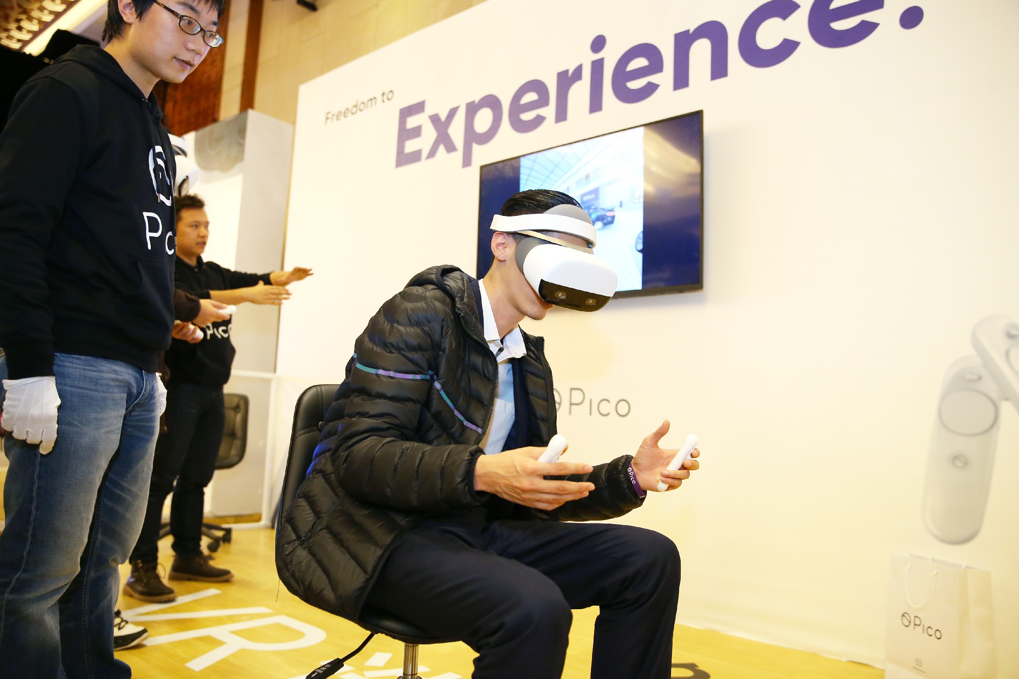 此次發(fā)布會(huì)的另一重要內(nèi)容則是發(fā)布Pico B端行業(yè)應(yīng)用方案。Pico行業(yè)應(yīng)用部早在2015年底就已成立,經(jīng)過2年多的技術(shù)探索與行業(yè)積累,目前已形成了以Pico全系硬件產(chǎn)品為基礎(chǔ),包含E-PUI VR教育播控系統(tǒng)、VR影院播控系統(tǒng)、空間定位&動(dòng)作捕捉、深度感知系統(tǒng)、家庭VR娛樂升級(jí)方案等在內(nèi)的多套行業(yè)應(yīng)用解決方案,結(jié)合行業(yè)定制VR內(nèi)容,Pico可以為行業(yè)用戶提供定制化的硬件+內(nèi)容+軟件系統(tǒng)的整體解決方案?,F(xiàn)場(chǎng)Pico就提供了4套行業(yè)應(yīng)用Demo內(nèi)容供嘉賓體驗(yàn),涉及教育、VR影院、展覽展示、汽車。