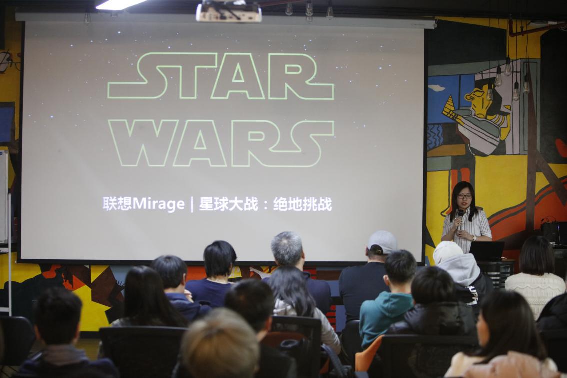 在活動(dòng)現(xiàn)場(chǎng),聯(lián)想帶來了與迪士尼基于星戰(zhàn)IP共同開發(fā)的Mirage AR智能頭顯套裝。作為剛剛在國(guó)內(nèi)正式發(fā)布的消費(fèi)級(jí)AR產(chǎn)品,不少行業(yè)大咖也是第一次見到Mirage AR智能頭顯套裝的真容,饒有興趣的加入到與“黑武士”決斗的行列中。