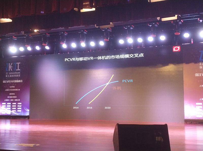 章立在演講中表示,2016年他講得最多的是“移動VR是未來”,2017年他開始為PCVR站臺,這樣做的核心原因是這兩者是兩個不同的市場。PCVR在行業(yè)早期借助PC的計算能力,能夠帶來非常好的性能和體驗,所以在用戶不滿足于眼鏡盒子的情況下,PCVR成為用戶唯一的選擇,非常適合那些對性能和體驗有極致追求的場景。而VR一體機則是一個全新的品類,到今天為止,全球范圍內(nèi)在售的VR一體機全部來自中國品牌,海外一些品牌(如Oculus)雖然發(fā)布了新品但是還沒有開售。從大朋的角度來看,VR一體機是一個從零開始的新增市場,而PCVR則是一個存量市場,兩者會有不同的發(fā)展軌跡。
