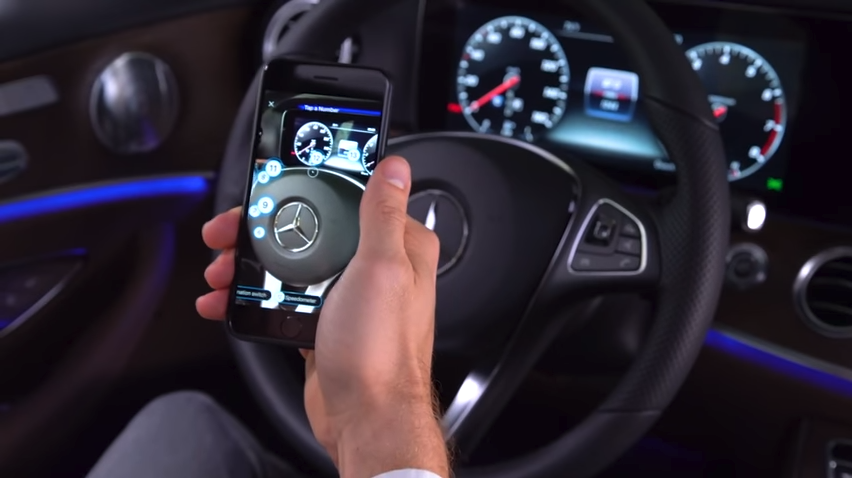 奔馳開發(fā)的這款A(yù)R應(yīng)用名為“Ask Mercedes”,它能夠讓用戶可以使用蘋果iPhone或者iPad來了解奔馳的最新車型。該應(yīng)用將與2018款E級(jí)梅賽德斯·奔馳(全系列,AMG車型除外)兼容,這些轎車用戶可以將手機(jī)或iPad攝像頭對(duì)準(zhǔn)車內(nèi)各個(gè)部分,然后用戶可以看自動(dòng)疊加在圖像上的AR數(shù)字,點(diǎn)擊數(shù)字可看到該部分的介紹信息。