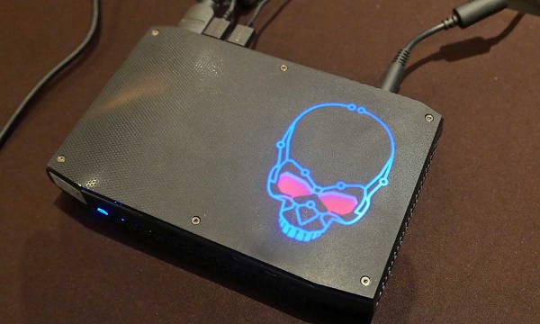 英特爾新推出的這款迷你VR電腦正面有骷髏頭燈光設(shè)計(jì),在設(shè)計(jì)上有點(diǎn)類似戴爾的Alienware。