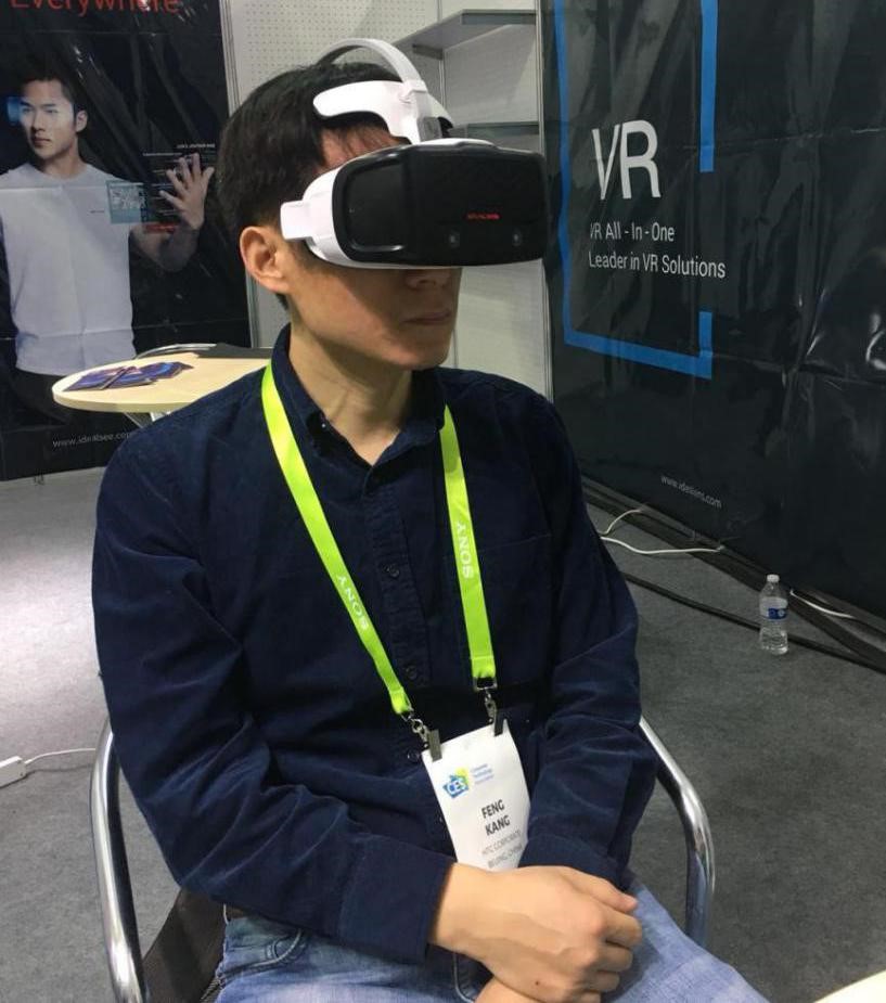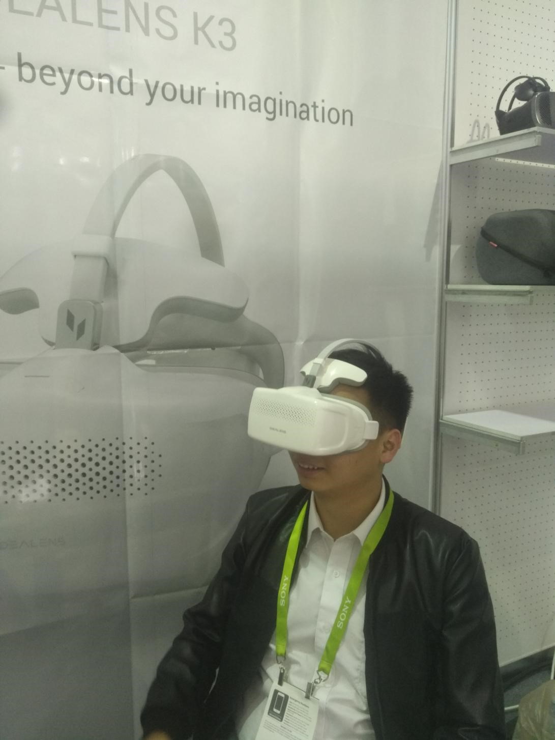 IDEALENS VR一體機(jī)在CES多個展位上亮相,圖為IDEALENS海外合作伙伴用K2+展示VR內(nèi)容