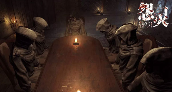 戴上頭顯之后,屋內(nèi)的8人就處在了同一個(gè)空間當(dāng)中,每個(gè)人的虛擬角色都是同樣的外形,帶著兜帽,圍在一張破舊的桌子周圍,像是參加某種神秘儀式的信徒。盡管游戲還沒有開始,但是到這里,鬼屋內(nèi)的恐怖氛圍已經(jīng)非常濃烈了,體驗(yàn)者除了對(duì)即將體驗(yàn)的《怨靈》充滿了恐懼感,同時(shí)對(duì)接下來發(fā)生的事情,又會(huì)有一種期待感。