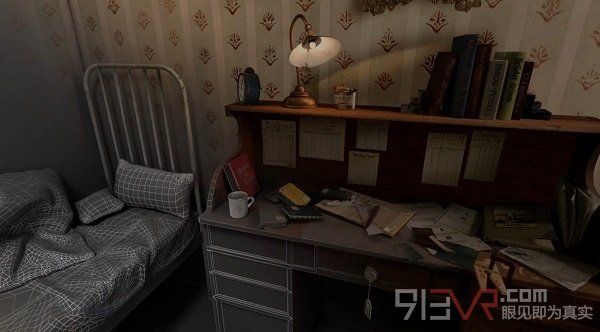 在VR體驗(yàn)中,你將扮演小說(shuō)主人公格里高爾,變身為巨型甲蟲(chóng),探索格里高爾的臥室,室內(nèi)的書(shū)籍、財(cái)物、文件等物品都將按照與現(xiàn)實(shí)1比1的比例呈現(xiàn)在VR世界中。同時(shí),體驗(yàn)中伴隨著令人毛骨悚然的甲殼摩擦碰撞的聲音以及屋外低沉的竊竊私語(yǔ),極大的加強(qiáng)了VR體驗(yàn)的代入感。
