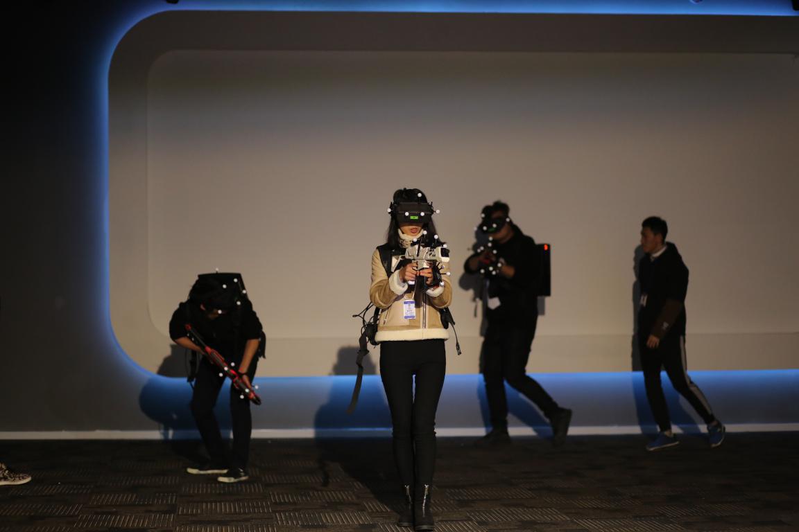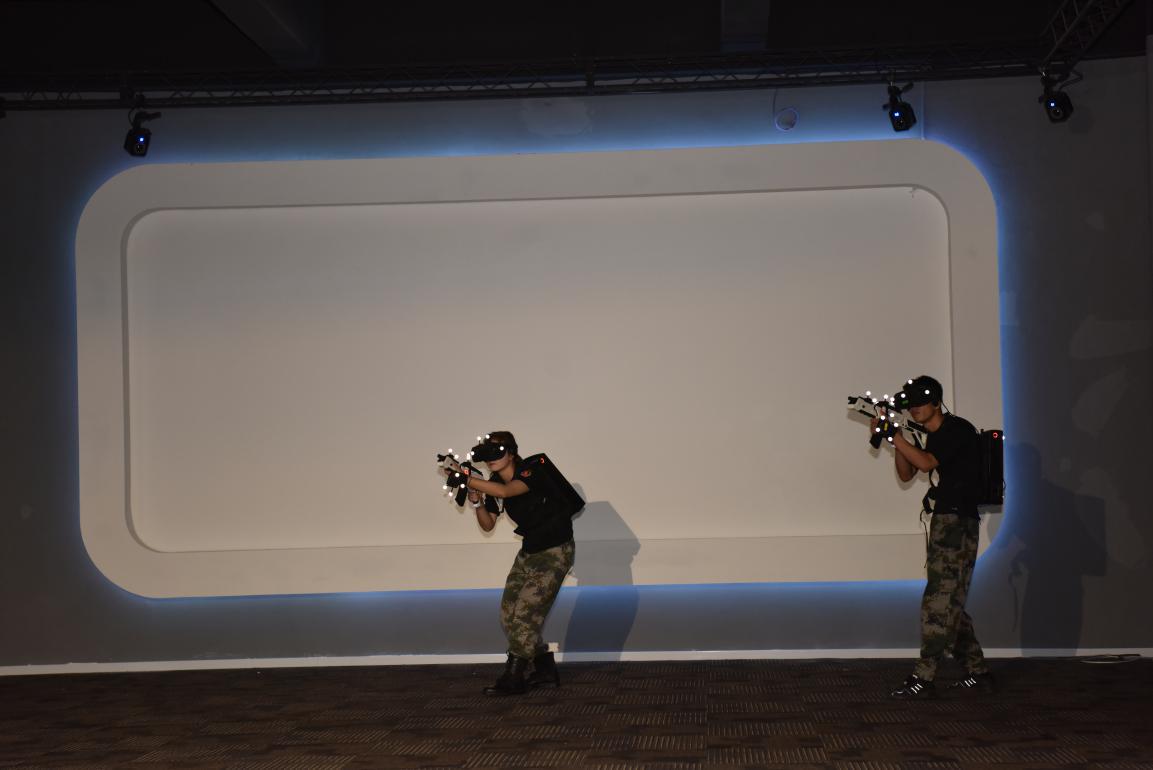 某部退伍特種兵丁曉鳳及其戰(zhàn)友為在場(chǎng)嘉賓進(jìn)行了高度仿真軍事題材大空間VR電競(jìng)演示,博得了陣陣喝彩。