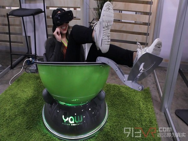 由創(chuàng)業(yè)公司Intellisense設(shè)計(jì)和開(kāi)發(fā),Yaw VR通過(guò)一個(gè)整齊地安裝在球形穹頂內(nèi)的座椅提供3DoF運(yùn)動(dòng),球形穹頂?shù)墓饣獗砻媸褂眯‰妱?dòng)電機(jī)。這種方法避免了在高端運(yùn)動(dòng)系統(tǒng)中使用昂貴的線性執(zhí)行器,并可以折疊存儲(chǔ)。