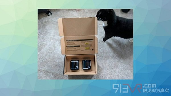 包裝盒外面寫著“原型——非賣品”。GameFace Labs一共收到了4箱的2.0基站,每個(gè)箱子中有2個(gè)基站。
