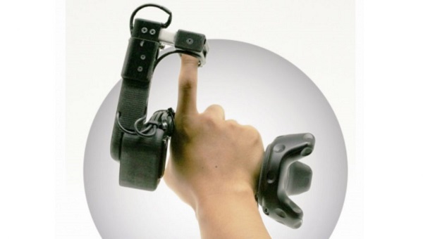 該原型包括與力傳感器耦合的伺服電機(jī)。力傳感器在用戶抓取和觸摸虛擬物體期間將力施加在用戶的食指上。CLAW原型還在食指處集成了振動(dòng)致動(dòng)器, 在Vive位置追蹤的協(xié)助下,CLAW可以以模擬用戶觸摸虛擬物體時(shí)所感受到的表面紋理。雖然聽上去很一般,不過CLAW還可以模擬用戶扣動(dòng)手槍扳機(jī)時(shí)候的力反饋。要知道,目前市面上有很多射擊類的VR游戲,因此CLAW的市場潛力無窮。
