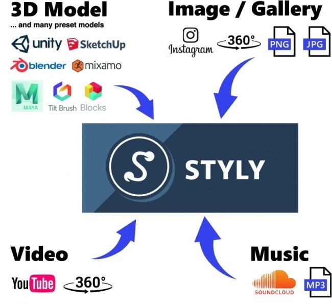 STYLY是spentric VR Lab的作品,這是一家日本公司,致力于為用戶提供基于云和代理的服務(wù),以創(chuàng)建高質(zhì)量的VR內(nèi)容,而無需了解編程語言。該平臺(tái)可以通過Bender、Maya和Sketchup等工具導(dǎo)入。