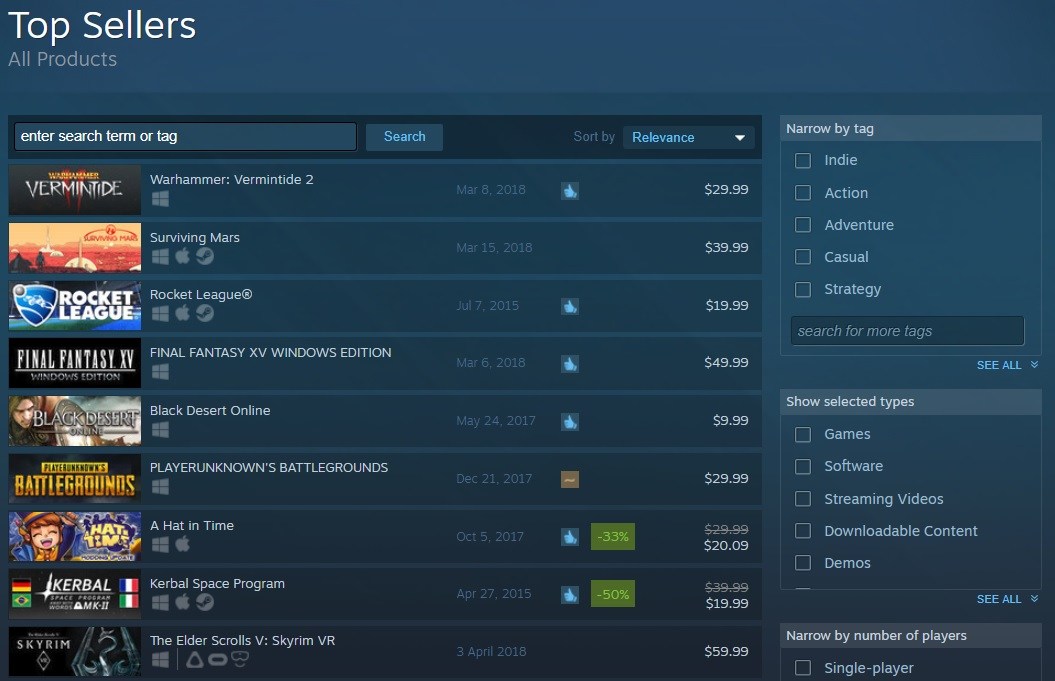 請注意,這是當(dāng)日所有Steam游戲的銷量排名,不僅僅是VR游戲的銷量排行榜,其所代表的意義非同一般。如果你加入“VR游戲”的篩選項(xiàng),你會發(fā)現(xiàn)《美麗水世界(Subnautica)》在VR游戲銷量榜排行第一,然而這款支持VR的游戲在全Steam游戲的銷量排行榜上僅僅位居第19位。