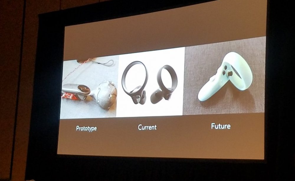 Oculus今天在GDC舉行的“Inside Oculus 2018”會(huì)議上,大家有機(jī)會(huì)通過此次會(huì)議了解最新的六度自由追蹤VR一體機(jī)。下圖由Ubisoft Montreal公司的奧利維爾·帕爾米埃里拍攝,圖中的手環(huán)型遙控器為白色的,通過VR一體機(jī)可以實(shí)現(xiàn)完全的虛擬空間追蹤。不過,最大的變化是,新版本帶來了Oculus Touch風(fēng)格的操縱桿,而不是Connect版本中的追蹤板,還有兩個(gè)面部按鈕。新款操縱桿整體上更接近于Touch。