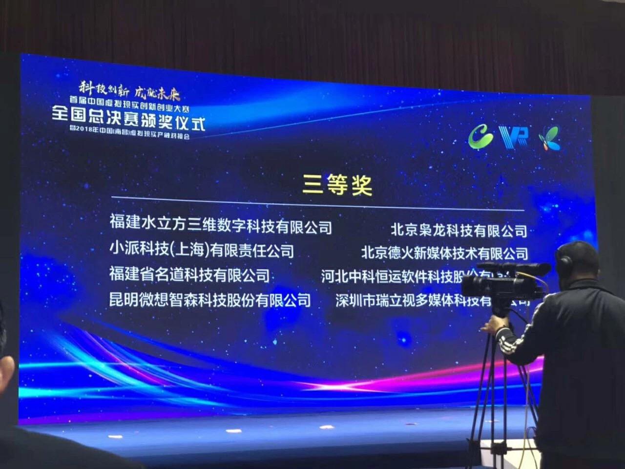 2018年3月23日,在中國(guó)創(chuàng)新創(chuàng)業(yè)大賽組委會(huì)辦公室的指導(dǎo)下,由工信部旗下中國(guó)電子信息產(chǎn)業(yè)發(fā)展研究院及虛擬現(xiàn)實(shí)產(chǎn)業(yè)聯(lián)盟、南昌市紅谷灘新區(qū)、國(guó)科創(chuàng)新創(chuàng)業(yè)投資有限公司主辦的,首屆中國(guó)虛擬現(xiàn)實(shí)創(chuàng)新創(chuàng)業(yè)大賽全國(guó)總決賽頒獎(jiǎng)儀式暨2018年中國(guó)(南昌)虛擬現(xiàn)實(shí)產(chǎn)融對(duì)接會(huì)在南昌順利落幕。