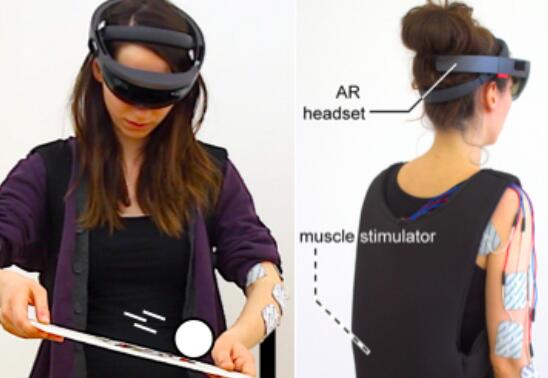 德國(guó)波茨坦Hasso-Plattner-Institut的人機(jī)交互實(shí)驗(yàn)室的研究人員最近發(fā)布了一個(gè)視頻,該視頻展示了一種針對(duì)增強(qiáng)現(xiàn)實(shí)的可穿戴式觸覺問題的新穎解決方案。使用輕量級(jí)的移動(dòng)電肌肉刺激(EMS)設(shè)備,可為手臂肌肉提供低電壓,其設(shè)想是讓AR頭戴式頭顯用戶保持空手狀態(tài),還能夠在與虛擬物體進(jìn)行交互時(shí)體驗(yàn)力反饋,并且在觸摸環(huán)境中的物體時(shí)也會(huì)感受到額外的力量。