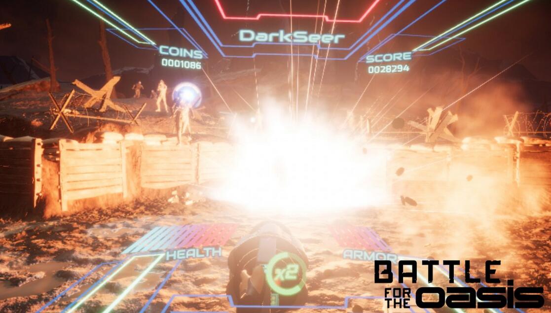 在《綠洲爭(zhēng)奪戰(zhàn)》中,玩家要扮演主角所屬的革命軍,試圖擊敗企圖掌控綠洲的“創(chuàng)線企”(IOI)兵團(tuán),玩家要穿過行星毀滅的戰(zhàn)壕,奔向環(huán)繞著皮拉克城堡的白雪覆蓋的飛機(jī),希望能阻止“創(chuàng)線企”奪取綠洲的企圖。