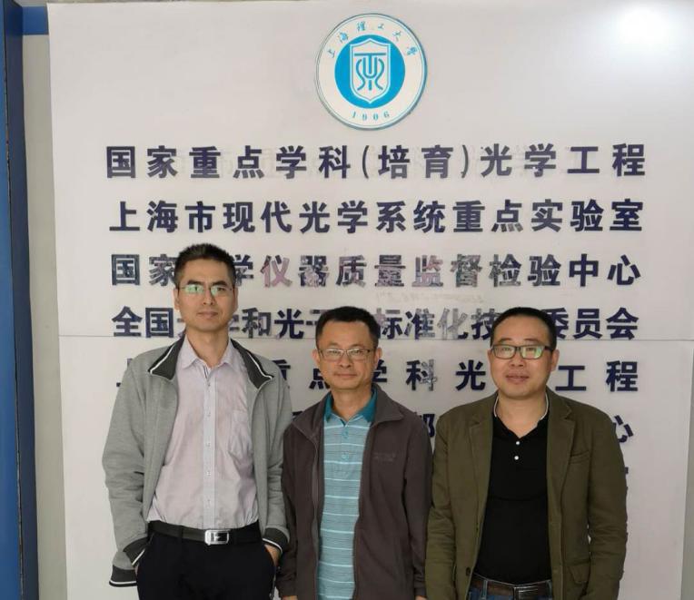 上海理工大學教授高秀敏(左)與瓏璟光電CEO馬國斌(中)、工藝總監(jiān)譚灝(右)