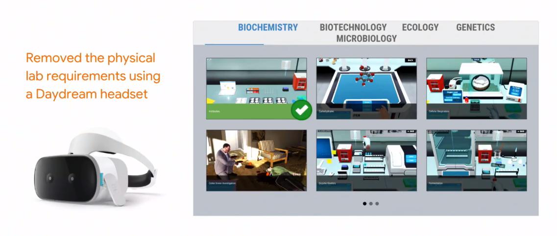 為了讓學(xué)生參與這些實踐課程,谷歌與一家名為Labster的公司合作創(chuàng)建了一個VR實驗室,這意味著高校將能夠提供完整的在線遠程課程,如生物學(xué)。