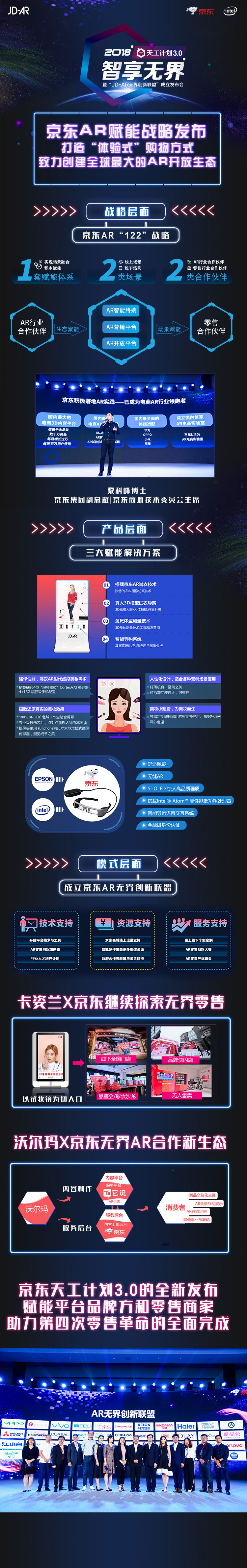會上,京東宣布聯(lián)合英特爾、沃爾瑪、唯品會、聯(lián)想、卡姿蘭等數(shù)百家AR行業(yè)和零售行業(yè)合作伙伴成立全國首個AR無界創(chuàng)新聯(lián)盟,致力于用AR技術(shù)打造線上和線下全新的購物場景, 通過增強現(xiàn)實視覺體驗的形式來為消費者創(chuàng)造購物的新鮮感和樂趣,用“體驗式”購物方式進一步提升消費感受。