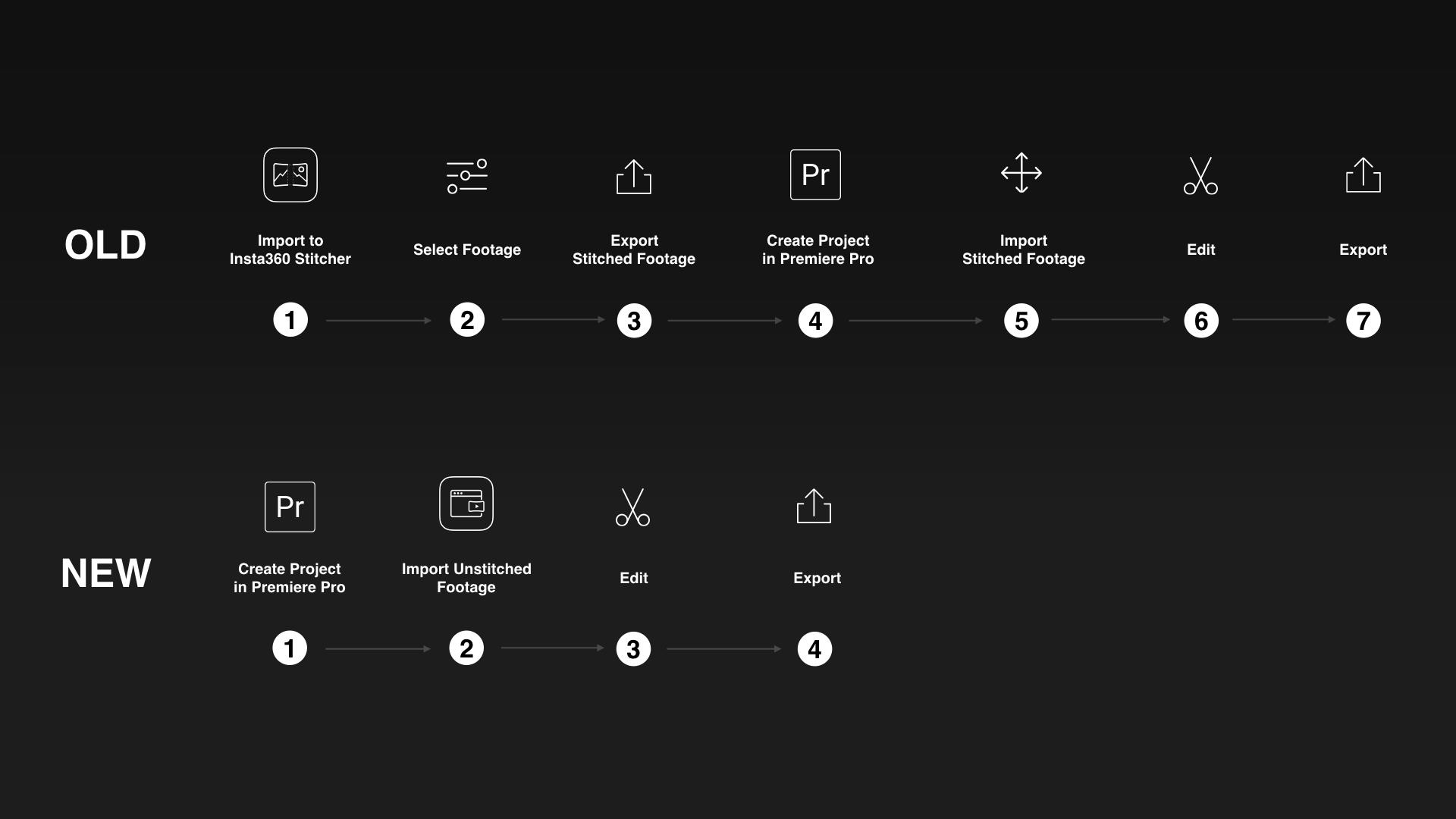 相較于傳統(tǒng)的“先拼接-后剪輯”的VR視頻后期流程,用戶安裝了該插件后,可以直接將 Insta360 Pro 拍攝的素材導(dǎo)入 Adobe Premiere Pro CC 進(jìn)行拼接、剪輯。無(wú)需提前在拼接軟件中拼接,大大縮減了剪輯時(shí)間成本和工作量,提高了效率。