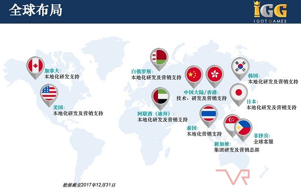 作為一家全球知名游戲開發(fā)商及運(yùn)營(yíng)商,IGG自成立之初將戰(zhàn)略視野定位在整個(gè)全球市場(chǎng),歷時(shí)十二載,堅(jiān)持“全球化研發(fā)、全球化運(yùn)營(yíng)及全球化市場(chǎng)”的發(fā)展戰(zhàn)略。截至目前,已在全球10多個(gè)國(guó)家和地區(qū)設(shè)有分支機(jī)構(gòu),建立本地化研發(fā)及運(yùn)營(yíng)團(tuán)隊(duì),拓展全球化策略。其游戲產(chǎn)品以21種不同語言版本向全球發(fā)行,用戶遍及全球200多個(gè)國(guó)家和地區(qū),擁有約4.8億的注冊(cè)用戶。特別值得一述的是,近年來,IGG更在中國(guó)、韓國(guó)、越南、泰國(guó)等亞洲市場(chǎng)取得重大突破。2017年全年收入,來自亞洲、北美及歐洲市場(chǎng)的貢獻(xiàn)分別約占49%、26%及21%。(數(shù)據(jù)截至2017年12月31日)。