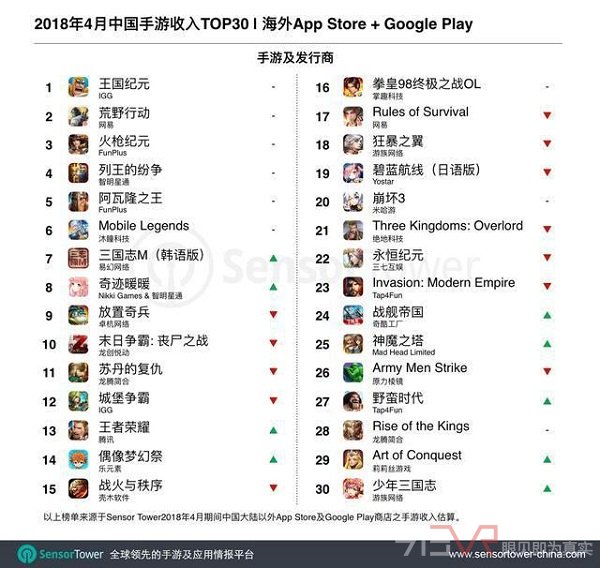 根據(jù)國(guó)際權(quán)威機(jī)構(gòu)App Annie統(tǒng)計(jì)顯示,《王國(guó)紀(jì)元》在全球游戲收入排行榜目前已攀升至第11名;值得一提的是,自2017年8月以來,《王國(guó)紀(jì)元》已榮登并蟬聯(lián)全球戰(zhàn)爭(zhēng)策略類手游暢銷榜榜首至今,更持續(xù)霸榜國(guó)內(nèi)出海手游收入榜第一位置??v覽全球App Store/Google Play暢銷榜,自上線以來,在iOS平臺(tái)上,《王國(guó)紀(jì)元》已在全球51個(gè)國(guó)家和地區(qū)登頂,在98個(gè)國(guó)家和地區(qū)的進(jìn)入前五,在114個(gè)國(guó)家和地區(qū)進(jìn)入前十;在Google Play平臺(tái)中,《王國(guó)紀(jì)元》亦在全球39個(gè)國(guó)家和地區(qū)奪魁,在83個(gè)國(guó)家和地區(qū)的進(jìn)入前五,在99個(gè)國(guó)家和地區(qū)進(jìn)入前十。(數(shù)據(jù)來源:全球權(quán)威移動(dòng)應(yīng)用數(shù)據(jù)統(tǒng)計(jì)分析機(jī)構(gòu)App Annie & Sensor Tower)