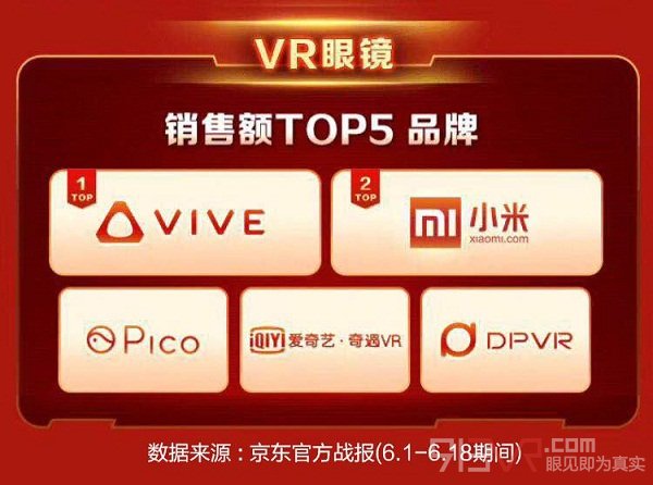那么小米VR一體機(jī)強(qiáng)大的品牌熱度,是否助力其在銷量上獨(dú)占鰲頭呢?從天貓平臺(tái)整體的銷售數(shù)據(jù)來(lái)看,小米穩(wěn)居第一,Pico緊隨其后,UGP和HTC分列3、4位,京東方面,根據(jù)京東平臺(tái)目前發(fā)布的6.1-18日京東平臺(tái)銷售額Top5榜,HTC Vive居首,小米屈居第二,Pico則位于第三。