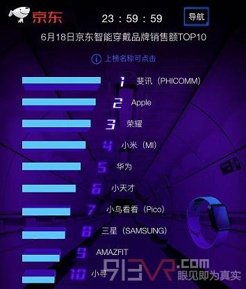 6.18當(dāng)天智能穿戴品牌銷售額Top10