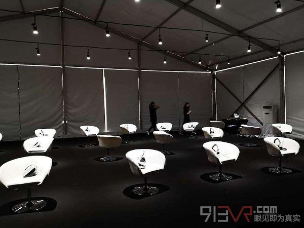 上午9點,我們作為當天第一批觀眾進入場館。場館由幾個相連的大型白色帳篷組成,場館內(nèi)部的光線偏暗,這樣的設(shè)計顯然是為了實現(xiàn)更好的觀影體驗,同時也增加了一種科技與未來結(jié)合的神秘感。
