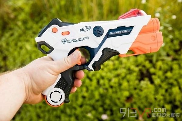 與大多數(shù)射擊游戲不同,Nerf Laser Ops Pro系統(tǒng)不需要玩家佩戴背心或任何其他傳感器,因?yàn)樘綔y(cè)器位于槍管末端。Nerf槍與專業(yè)智能手機(jī)應(yīng)用程序同步,增加了AR功能。