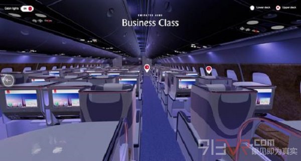 阿聯(lián)酋航空網(wǎng)站采用基于網(wǎng)絡(luò)的VR技術(shù)支持用戶查看阿聯(lián)酋航空A380和阿聯(lián)酋航空波音777的內(nèi)艙,讓客戶探索他們的座位。客戶還通過導(dǎo)航熱點了解經(jīng)濟艙,商務(wù)艙和頭等艙。