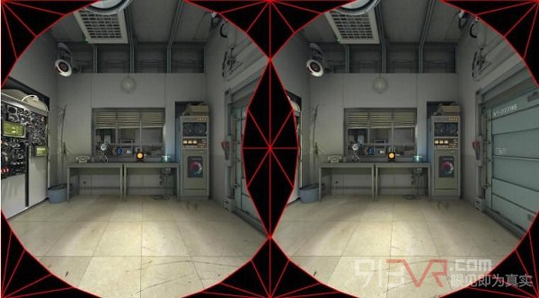 在VR 頭盔的光學(xué)視場中,由于鏡杯結(jié)構(gòu)和人眼特點(diǎn),圖像中某些區(qū)域人眼是無法看到的,在VR圖像渲染中被稱為Hidden Area(如下圖中紅色三角覆蓋的地方,人眼其實(shí)無法看到)。