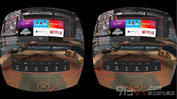 大朋巨幕影院的圖形渲染中巧妙的利用了這點(diǎn),通過利用特殊繪制的Hidden Mesh(隱藏網(wǎng)格),能有效降低GPU的渲染工作量。CPU,GPU并行度提高了,GPU渲染效率也提高了,又進(jìn)了了一步。懷著好奇心,筆者進(jìn)一步分析了Oculus Go的系統(tǒng),也許出于其他的考慮,發(fā)現(xiàn)它并沒有采用Hidden Mesh。下圖紅框是Oculus Go Home中用戶能夠看到的部分,紅框之外圓圈之內(nèi)的內(nèi)容用戶通過透鏡和鏡杯并不能看到。