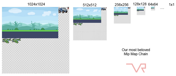 這樣,每次渲染的時(shí)候系統(tǒng)會找出相對當(dāng)前場景最適合的圖像,做最小的縮放操作或者根本無需縮放,讓圖像信息最大程度的保真。