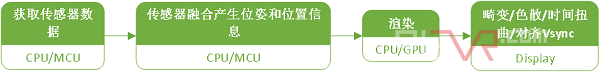 VR系統(tǒng)本質(zhì)上是一個(gè)異構(gòu)計(jì)算系統(tǒng),內(nèi)部的CPU, GPU,Display等硬件模塊一直協(xié)同并行工作。VR世界中的每一個(gè)物體從第一個(gè)模塊開始,在整個(gè)流水線上一步步推進(jìn),最終進(jìn)入用戶眼中,如何提高流水線的每一步的效率和并行度是VR系統(tǒng)高效運(yùn)轉(zhuǎn)的關(guān)鍵。