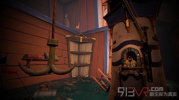 視頻里面我們看到了游戲標(biāo)題中的漁夫,他是一個名叫Bob的木偶,在一座燈塔模型里過著簡單的生活。在他房間的中間有另一個燈塔模型,是他所生活的地方的等比例縮小版本,一切細(xì)節(jié)都一模一樣。