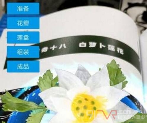 目前已出版的果蔬切雕類教材基本上均采用傳統(tǒng)的“圖文”模式,切雕等手法展示不充分,學(xué)生難以理解,難以產(chǎn)生學(xué)習(xí)欲望。AR技術(shù)解決了以上“痛點(diǎn)”。書中各款杯飾、盤飾均有配圖,通過手機(jī)掃描配圖,作品制作過程“躍然紙上”。有學(xué)生展示了《實(shí)用果蔬切雕與裝盤》的掃描效果,圖上的切雕作品栩栩如生,立體的“蓮花”出淤泥而不染,亭亭玉立。