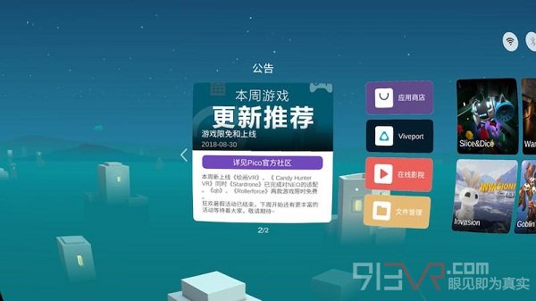 熟悉小怪獸系列產(chǎn)品的朋友,肯定會記得Pico那經(jīng)典的桌面場景設(shè)計(jì)——站在熱氣球里看風(fēng)景。此次新系統(tǒng)首先帶來的就是全新的桌面場景,用戶如果想切換場景,只需要選擇“場景管理”這個(gè)應(yīng)用(畫面右側(cè)應(yīng)用欄)即可切換。