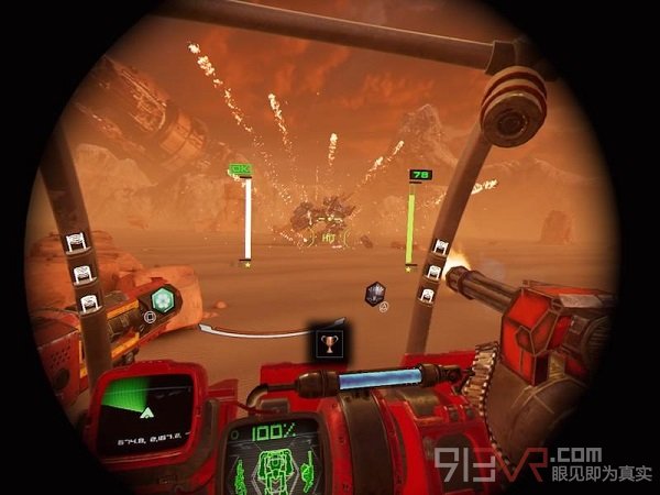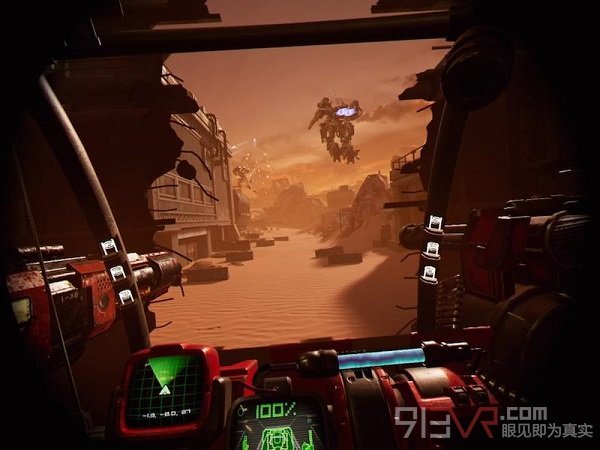 隨著前面幾個(gè)機(jī)甲開路(直接把機(jī)庫(kù)轟開一個(gè)大洞),玩家駕駛的機(jī)甲也可以自由前行了。不得不說(shuō),作為一款PSVR游戲,本作的畫面相當(dāng)精美,整體感覺頗有一種3A游戲級(jí)別的質(zhì)感,這點(diǎn)對(duì)于國(guó)產(chǎn)游戲來(lái)說(shuō)尤為不易。
