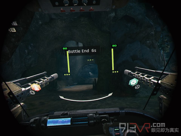 消滅完雜兵,系統(tǒng)引導(dǎo)玩家移動(dòng)至前方光標(biāo)位置。本作的移動(dòng)操作采用了經(jīng)典的平移方式,在進(jìn)行移動(dòng)時(shí)畫面會(huì)進(jìn)行“縮圈”處理(為防止玩家暈眩),不過(guò)這種設(shè)計(jì)對(duì)于我這樣的早已不暈任何VR游戲的老玩家來(lái)說(shuō)其實(shí)沒有必要。在之前采訪吳亞光的時(shí)候,他也表示過(guò)歐美很多玩家其實(shí)希望去掉這些保護(hù)措施,因?yàn)樵谒麄兛磥?lái),真正選擇VR游戲的玩家其實(shí)都是不暈VR的(暈VR的玩家就不玩VR游戲了)。對(duì)于這種說(shuō)法我其實(shí)也是認(rèn)同的,希望本作的后續(xù)版本可以增加開/關(guān)“縮圈”保護(hù)措施的選項(xiàng)。