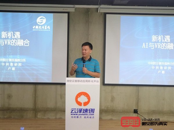 中科院計(jì)算所福州分所盧峰副院長(zhǎng)介紹了 AI+VR 的融合與機(jī)遇