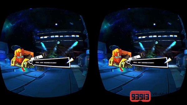 進(jìn)入游戲之后,我驚喜的發(fā)現(xiàn)本作還提供了過場(chǎng)畫面來介紹劇情,這點(diǎn)對(duì)于移動(dòng)VR游戲來說實(shí)屬不易,大概的故事就是一些鋼鐵斗士(變形機(jī)甲)出去巡邏,結(jié)果走散了,然后主角就來到一艘飛船上,開始了探索之旅。