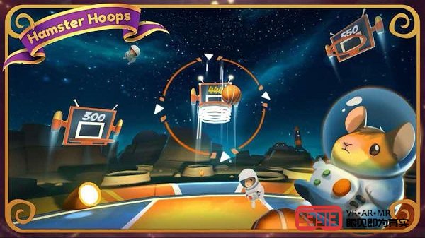 第二個小游戲名為“倉鼠籃球”,其場景貌似是一個外星球的表面(可愛的倉鼠還穿著宇航服呢),天空中不斷出現(xiàn)分值不等的籃球,而我需要做的就是投籃(用手柄劃出投籃的弧度)。作為一個曾經(jīng)非常喜歡打籃球的boy,對于這種小游戲我還是比較熟悉的,不過投籃的力度和弧度確實還需要多加練習。
