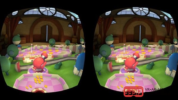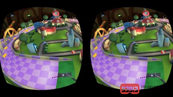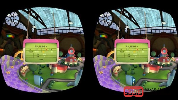 迷你高爾夫的玩法同樣非常簡單,按住觸摸板或扳機鍵,然后用體感的方式揮動球桿(手柄),球會隨著球桿揮動經(jīng)過不同的軌跡(路上可以吃各種金幣),最終被打進洞,這個操作同樣需要適應和練習。每一洞都有不同的地圖,在我第一洞用了6桿才進洞之后,第二洞竟然一桿進洞,真的是太神(瞎)奇(蒙)了!