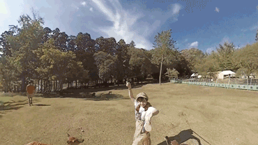 此外,ONE X 本次全新推出了“空中漂移”特效,實現(xiàn)空中懸停、類似于滑軌拍攝的空中漂移視角。結(jié)合相應(yīng)的配件,相機被拋擲出去的同時高幀率拍攝,通過后期軟件的調(diào)速處理和鏡頭變化(全景相機可以拍攝360°視頻因此后期能自由選擇鏡頭方向),最終實現(xiàn)驚人的視覺效果。