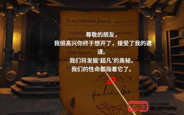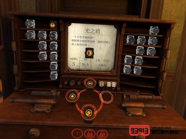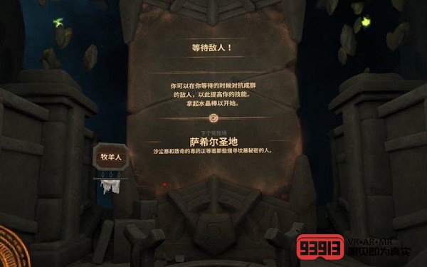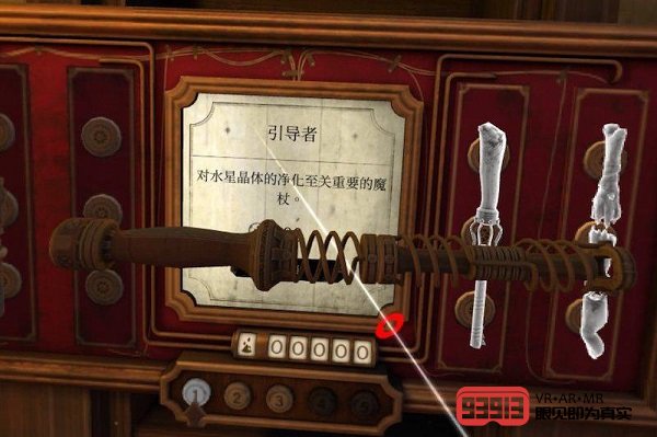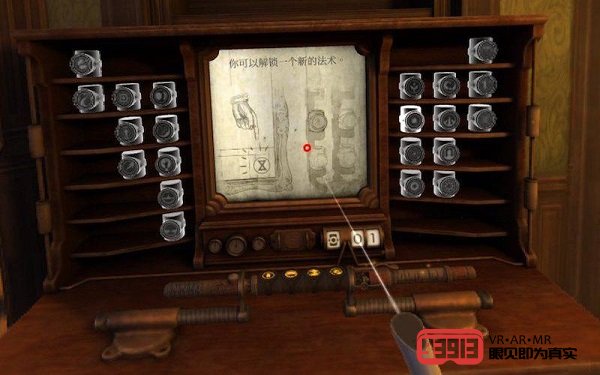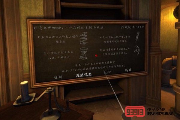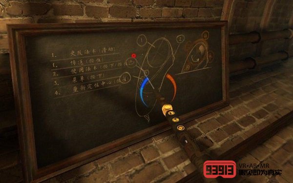 在欣賞著本作不錯(cuò)的畫(huà)面同時(shí),我發(fā)現(xiàn)作坊的墻上有多塊黑板,其中一塊黑板上的內(nèi)容就介紹了游戲的基本操作:按住觸摸板瞬移、滑動(dòng)觸摸板切換魔法、按下扳機(jī)鍵使用魔法、按下退出鍵打開(kāi)菜單,一切都非常簡(jiǎn)單自然。